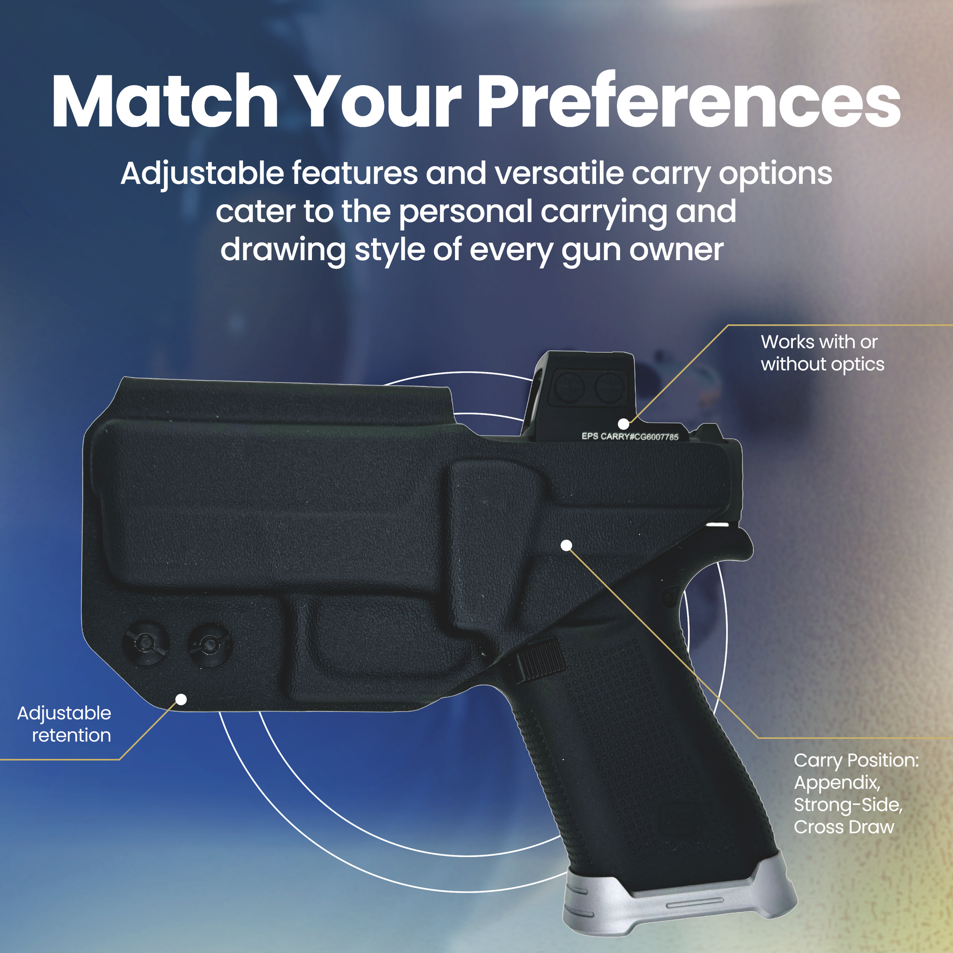 Adjustable Retention: Fine-tune for comfort and carry preference.